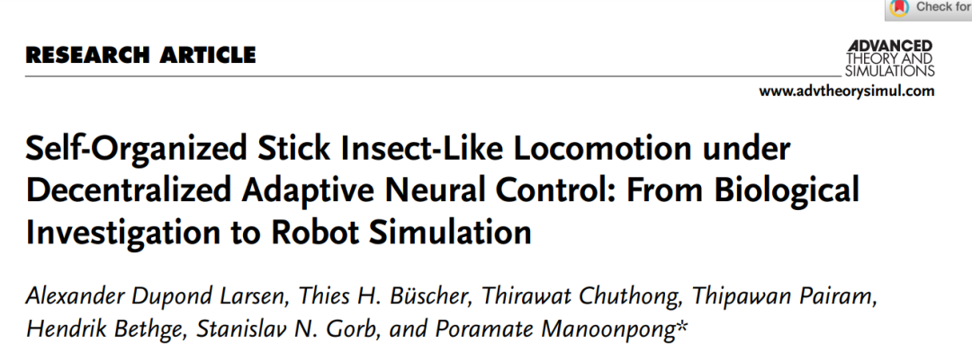 相关研究最近被发表在《Advanced Theory and Simulations》期刊上,作者是来自南丹麦大学具身人工智能和神经机器人学实验室的Manoonpong团队。
