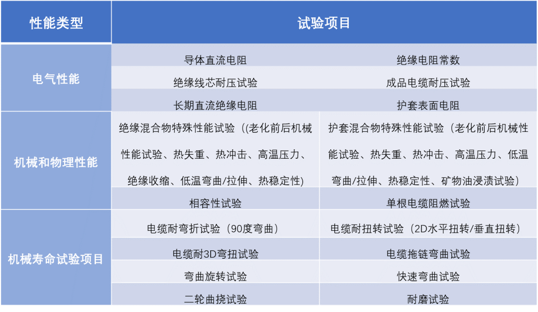 图 | 电缆性能测试项目汇总