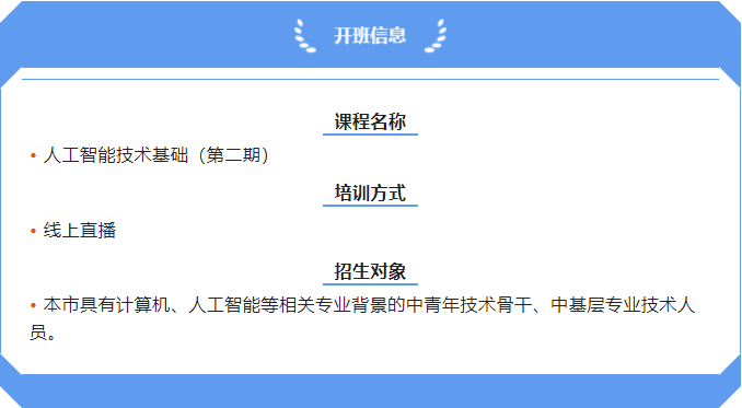 专业课《人工智能技术基础》(第二期)开班通知
