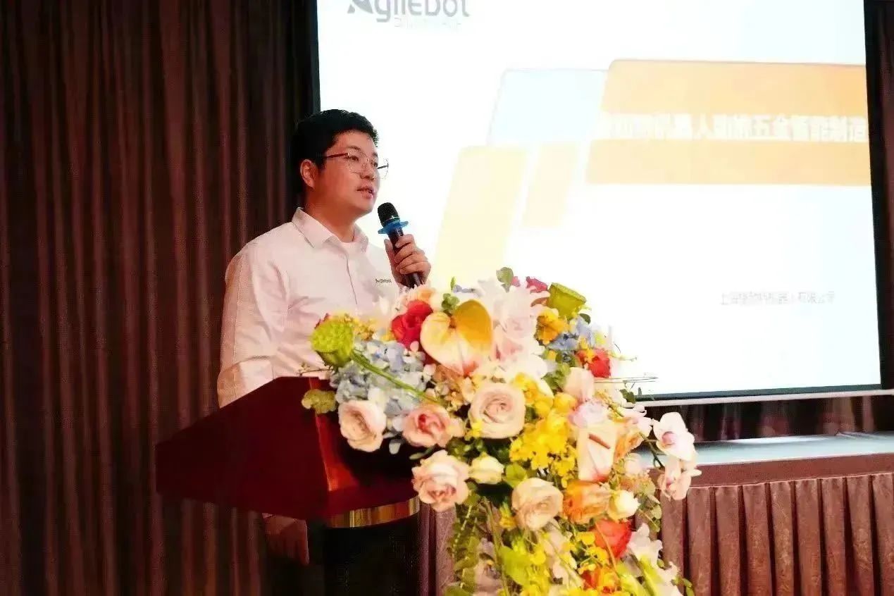 在大会首批配套供应链产品报告阶段,首批配套供应链企业战略合作签约代表:上海誉讯智能设备(集团)有限公司技术总监钱峰、盾钰(上海)互联网科技有限公司副总经理吴旭莲、深圳市添力自动化有限公司总经理肖小文、成都卡诺普机器人技术股份有限公司业务经理 田仁杰、上海捷勃特机器人有限公司销售经理范博文、节卡机器人股份有限公司总裁助理许惠分别介绍了相关的配套供应链产品。